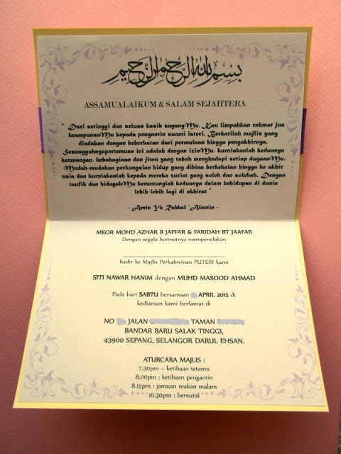 This is a card order requested by Siti from Sepang, Selangor. She ordered two hundred pieces of this wedding invitation cards specially given to her family, relatives and close friends. She wanted an interesting map, so I came up with this cute version map.